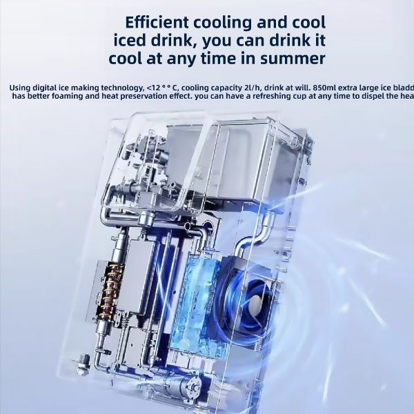 We are a professional manufacturer of water dispensers. This hot and cold water dispenser can be placed on a countertop without installation. It can also be hung on the wall, paired with bottled water or a water purifier. There is an 800ml ultra large ice bladder with instant water outlet, with multiple water temperature and volume settings to meet different water needs. Product parameters